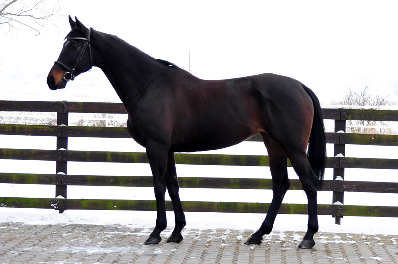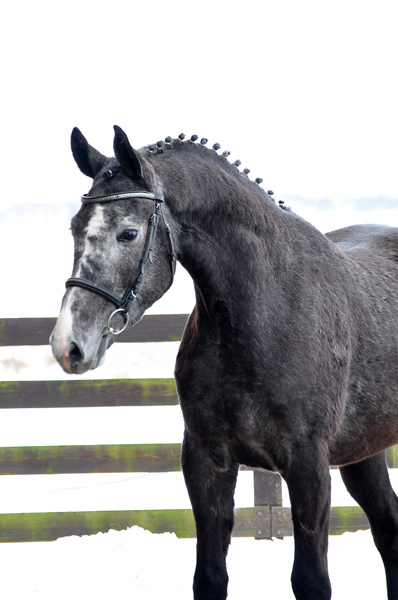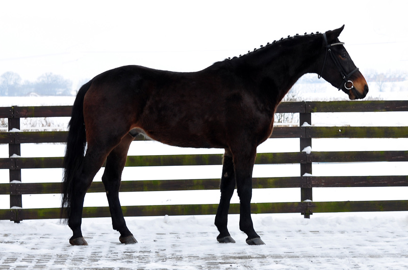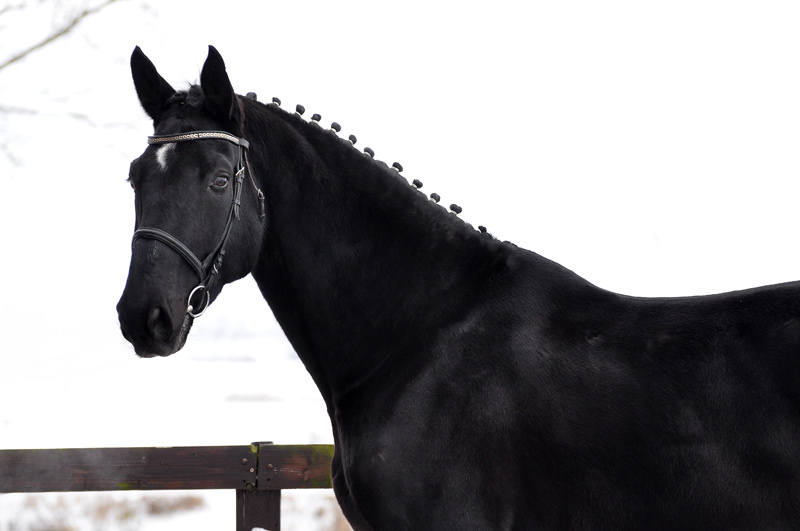 "Wie kommt man zu einem Pferd? In meinem Fall wie die Jungfrau zum Kinde. Ich hatte über Umwege schon mal ein Pferd von Slabys gekauft, den ich leider einschläfern musste. Galant war ein ganz besonderes Pferd für mich, aber da der Fahrsport für mich im Vordergrund steht wollte ich dann doch wieder ein zweites Pferd haben. Nach langer Suche habe ich bei Slabys dann meinen Eol gefunden. Ein Pferd, welches ich nur vom Video kannte und nachts bei mir angeliefert werden sollte. Gespannt waren wir alle, denn das Risiko einen "Schwerverbrecher" nach Hause zu bekommen war natürlich genauso gegeben wie der positive Umkehrschluss. Was soll ich sagen. mitten in der Nacht kam der Transport mit meinem Polen. Als sich die Rampe öffnete sahen wir alle nur ein riesen Kaliber von Pferd, das uns genauso neugierig und mit großen Augen anstarrte wie andersrum. Der Transporteur war wirklich sehr nett und fürsorglich mit dem großen, aber jungen Pferd umgegangen. Erzählte, dass er mittags noch mit ihm spazieren war, damit er nicht so lange nur auf dem Hänger stand. Und was soll ich sagen? Ich habe ein tolles, charakterlich einwandfreies, kinderliebes, unerschrockenes Pferd mit viel Potential bekommen! Mein Riese ist bei mir zu Hause noch gewachsen und versucht grade die 180 zu knacken! Mit Lukasz Slaby stehe ich immer noch in Kontakt, er fragt immer mal wieder nach wie es Eol geht, der bei uns innerhalb von zwei Tagen den Spitznamen "Erkan" kassierte. Ich habe meine Entscheidung ein Pferd vom Video zu kaufen nie bereuet und würde es in diesem Fall immer wieder so machen!"